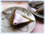 つぼみの形を模した焼き皮でこしあんをつつんださくら餅です。西伊豆産の桜葉2枚ではさんで仕上げました。葉をはがして香りを楽しみながら召し上がることを推奨しています。